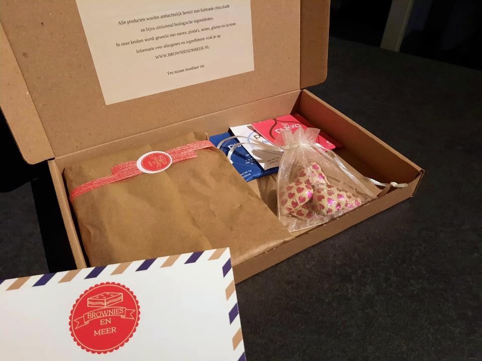 Nadat u de brownies heeft ontvangen bewaar deze dan een half uurtje in de koelkast. Dan zijn ze het lekkerst!