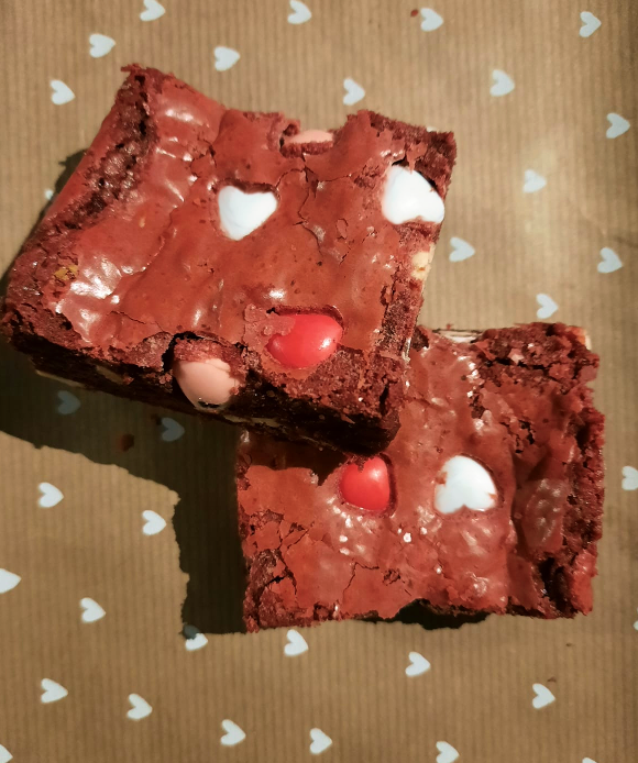 Perfect om te krijgen. Geschenkset met heerlijke red velvet brownies compleet met hartjes, 3 biologische thee soorten en een zakje chocolade hartjes. Ideaal voor elke situatie.